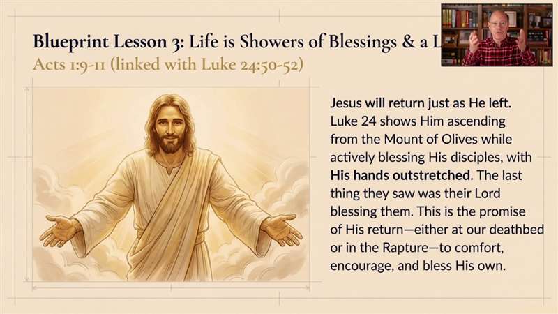Now, I love this. The third lesson I'm going to share with you is starting in verse 9. Life is a shower of blessings and fills us with living hope. That's how Jesus ascends to Heaven. I'm going to take you right there through a group we took to the Holy Land. We filmed the spot where Jesus ascended to Heaven, and I teach that lesson.
