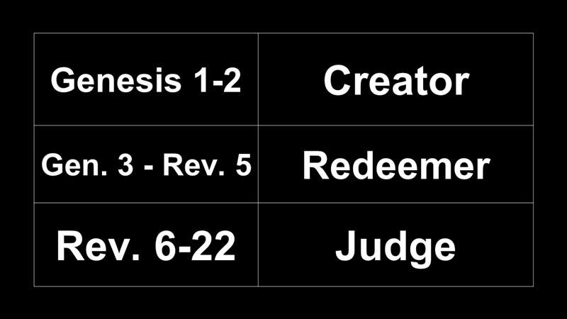 Now basically, that also is the framework of the Bible. Genesis 1 and 2 introduce us to the Creator. Genesis 3 to Revelation 5 talk about His work of redemption. Revelation 6 to 22 is all about the judgment that's coming. And that amazing framework is what we have in the Bible.