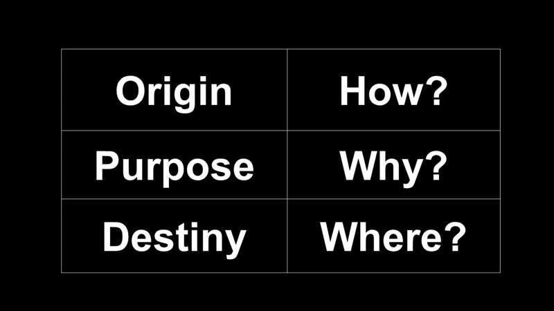 Destiny. People want to know where they're going. They want to know. When you're little, so when my kids were little, every time we got in the car, they always said, where are we going? And in about 30 seconds, when are we going to be there? Those are the questions of life. How did I get here? Why am I here? Where am I going?