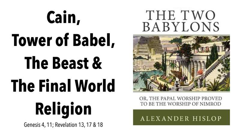 Well, this is from the Revelation study. When we go through Revelation 17, which is right there, I show you how Genesis 4:11 and Revelation 13:17-18 all combined to make the final religion. If you want to study a book, here's a great, very academic view of the archeology and history by Alexander Hislop.
