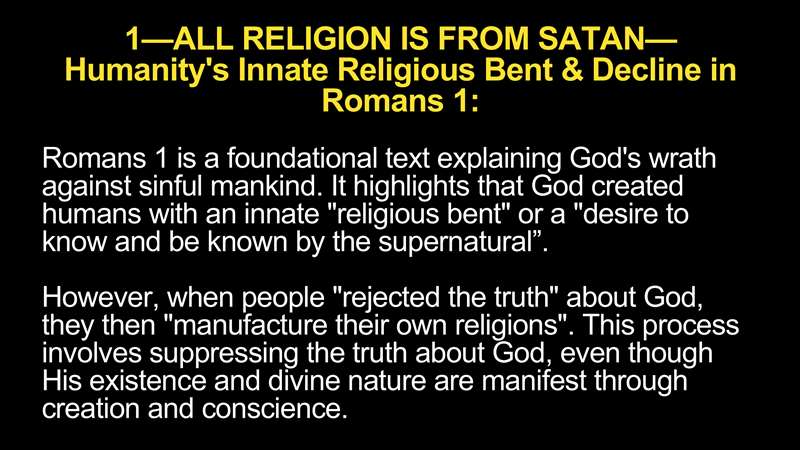 So, in essence, we're going to see next time, Romans 1 describes the underlying human predisposition to reject God's truth, to create false religion. Satan exploits this fundamental fall flaw in humanity using subtle deceptions that manifest historically through all the pagan systems that originated from Babel and currently through technologies like AI. The ongoing pattern culminates in the Antichrist End Time global, false religious system. The Bible calls it Mystery Babylon, which leverages and advances technology currently as AI to facilitate the worship of the Beast, demonstrating the ultimate extent of our spiritual decline into satanic religion.