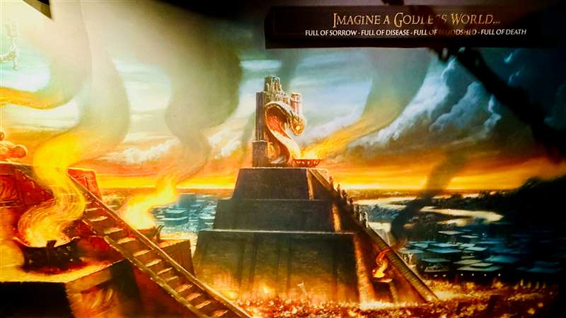 Now imagine that the book of Romans introduces us to a godless world. Bonnie and I as we were traveling and I will try and maybe later at another clip tell you about some of the amazing things that happened to us as we were traveling between teaching centers and we came up through St. Louis. And on the way to St. Louis, we found if we only went off the road a little ways, we went here this is the Creation Museum and the Ark Encounter, and this is the pre-flood post-flood world and this actually is the Tower of Babel. And this shows the ziggurat and the horrible idols and the people all united around it and worship.