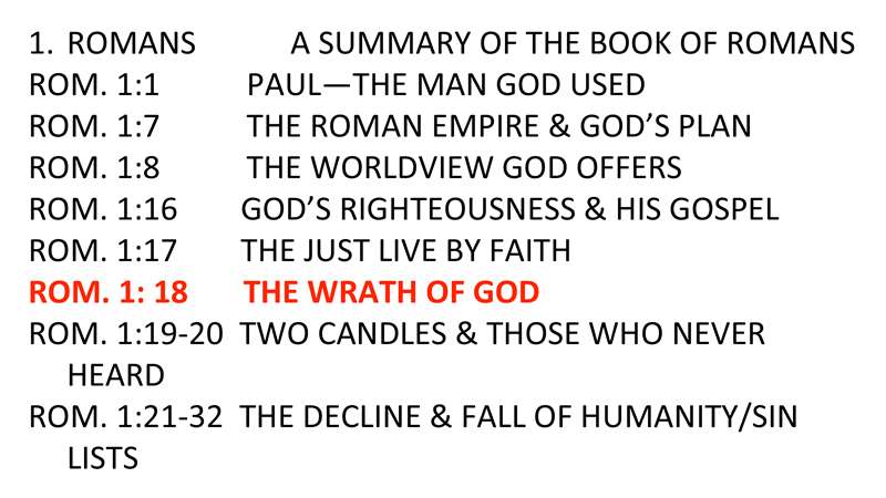 Okay. Now the wrath of God, that's verse 18. So, let's read verse 18. For the wrath of God is revealed from Heaven against all ungodliness and unrighteousness of men who suppressed the truth in unrighteousness.