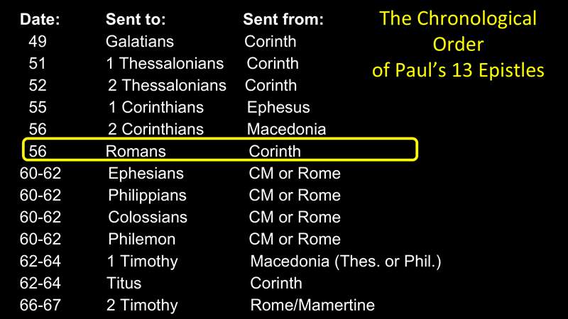 Now, here's where Paul is. Paul is on his second missionary journey. He's in Corinth ministering, and he writes an epistle from Corinth to the Romans, and we'll talk about that.