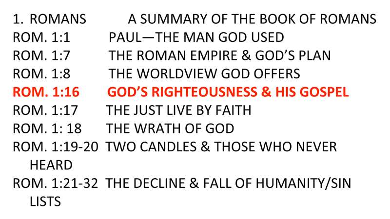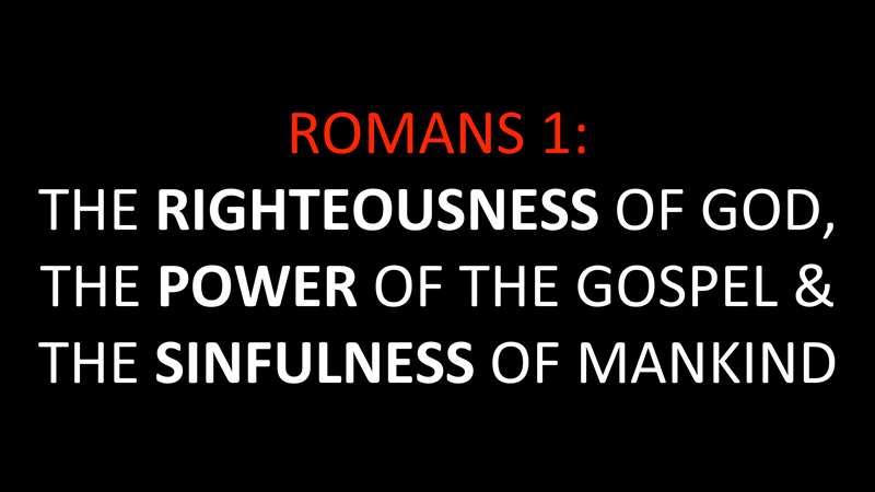 So, Romans one, as I encourage you to spend this week, you're going to find three parts to this chapter: the righteousness of God, the power of the Gospel, and the sinfulness of mankind. That's what the chapter's about.