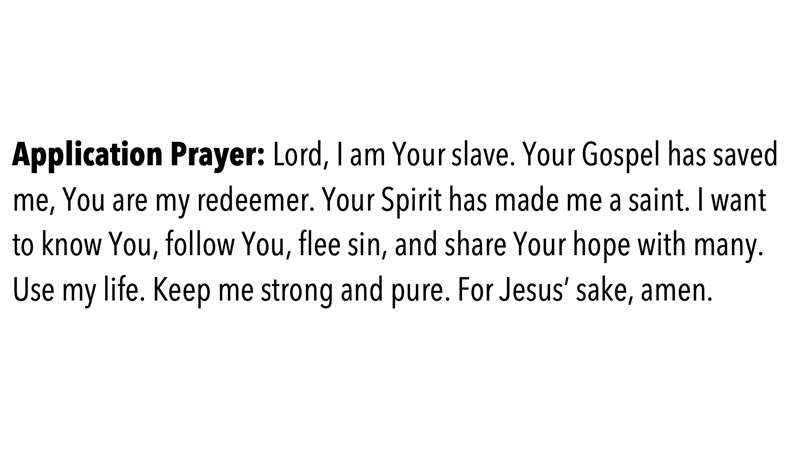 This is my prayer after chapter one. Lord, I'm your slave. That's what Paul said in verse one. Your Gospel has saved me. You are my redeemer. Your Spirit has made me a saint, and I want to know You, follow You, flee sin, and share Your hope with many. Use my life. Keep me strong and pure for Jesus' sake. Amen.