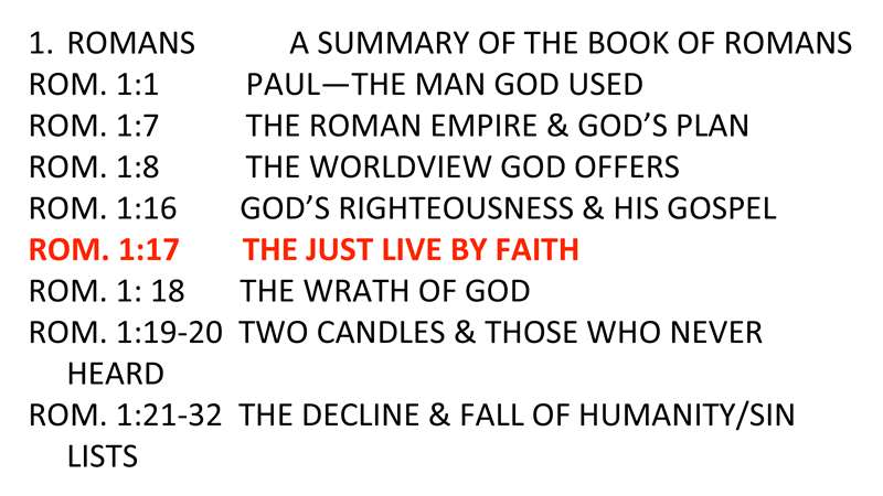 Now we go to verse 17. Look what the Bible says and let's read it together. Look at verse 17. For in it, the righteousness of God is revealed from faith to faith. As it is written, the just shall live by faith. Now, Romans reveals to us who the just are. Let me show you what I mean by that.