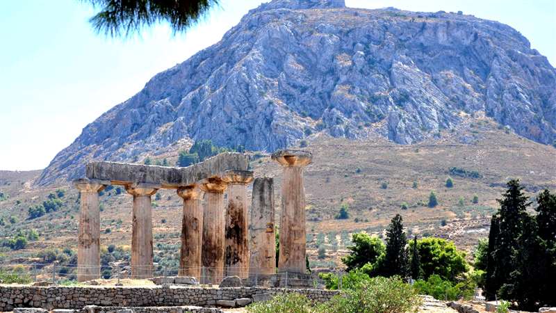 Now remember, the book of Romans was written in the shadow of the Temple of Apollo. This is the Acrocorinthos, the high part of Corinth. This is ancient Corinth, most notable structure, the Temple of Apollo. And Apollo, among other things, he was the third son of Zeus, but he, biblically speaking, was the conduit for Satan because he is the one that you could come and find out the future through-.