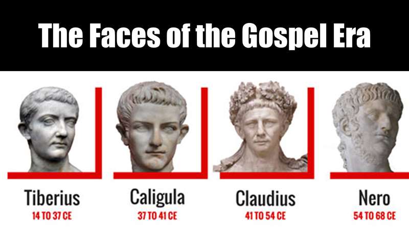 The faces of the Gospel era, here's Tiberius under whom Christ ministered. Caligula under whom the early Church began to grow. Claudius under whom Paul did his first two missionary journeys. His third missionary journey through his imprisonments and execution were under Nero. So those are basically the faces of the Gospel era.