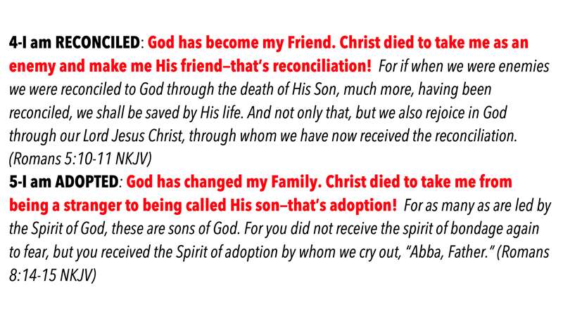 Then Romans tells me I'm reconciled to God. He's become my friend. Christ died to take me as an enemy and make me His friend.