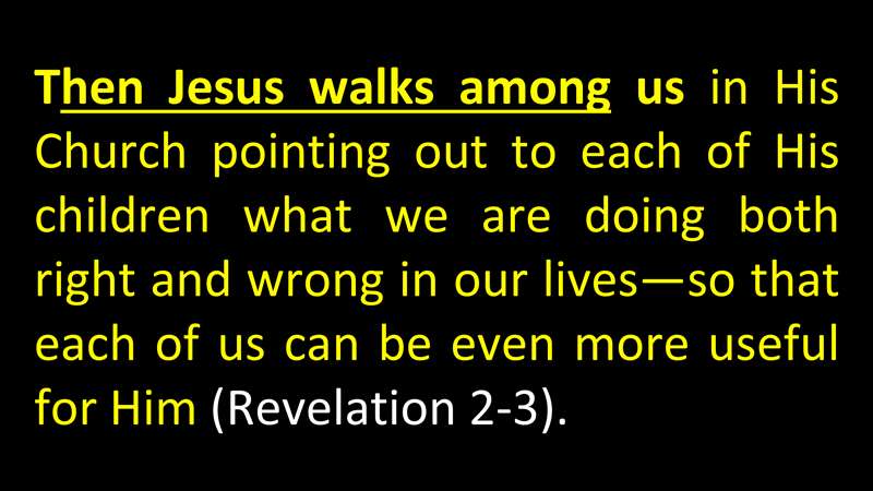 Revelation 2 and 3 are Jesus walking among us. He walked through the church, and they didn't know He was there, and He took notes. That's what Revelation 2 and 3 are all about. Jesus notes on His onsite visit to the church, and He looks to see what we're doing both right and wrong. Whether we're obeying what we know to be the truth of the Word of God.