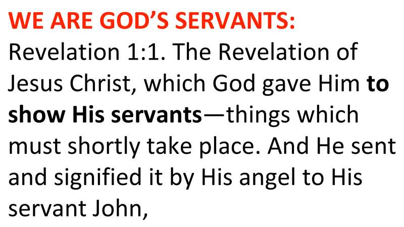 So, I said this to you already when I was reading, the whole book of Revelation is about God wanting us to be His servants. Paul illustrates servanthood by using galley slaves. You've all seen movies with galley slaves, Ben Hur, or whatever. A galley slave was completely chained down and obeyed whoever told them. How did Paul apply it? He said do you want to please the Lord? Make a daily choice to submit yourself as His bond servant. We could study that all day, but it's not in Revelation.