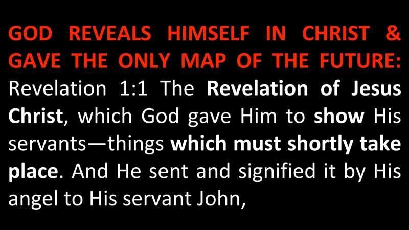 So, let's go to Revelation, and I'm going to read it. Oh, this is a scary moment. It's 10:32. Here we go. The revelation of Jesus Christ, which God gave him to show, what are the next two words? His servants. Very good. Oh, they're on the screen too. The things which must shortly take place. God reveals Himself. It's the revelation of Jesus Christ. God is unveiling Christ, and it's to show His servants the map of the future. So, that's what Revelation is all about. God says it.
