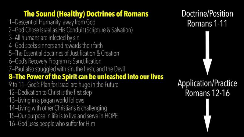 Sound or healthy doctrine. What do I mean by that? Remember the book of Titus, if you've studied that with his talks about sound, it's hugiainó, healthy doctrine. What are the healthy doctrines of Romans? Number one, humanity descended away from God. Tomorrow when we cover that chapter, we're going to see what happened, what humanity did, especially in not only the fall into sin in the Garden of Eden, but when God gave humanity a brand-new start through Noah, they went right back and even worse. And that's all chronicled in chapter one. And it just basically shows us anthropology and the history of religion in the world.
